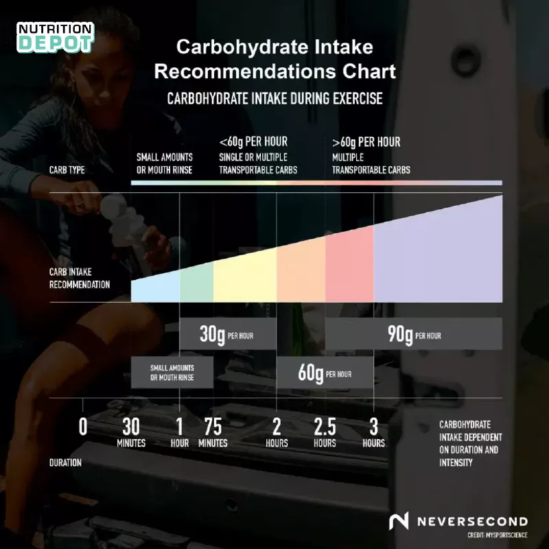 Neversecond’s C90 High Carb Mix contains 90 grams of carbohydrate per serving. C30 Sports Drink contains 30 grams of carbohydrate per serving. Both drink mixes utilize 2:1 maltodextrin-to-fructose carbohydrate blend.