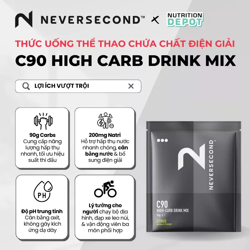 Neversecond C90 High Carb Drink Mix with electrolytes - Nutrition Depot