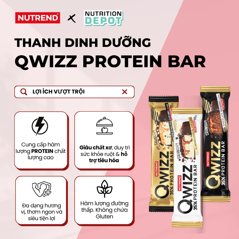 - Healthy snack: With low sugar content, Qwizz Nutritional Bar is an excellent choice for those looking to reduce sugar intake in their daily diet. Instead of consuming foods high in sugar, you can enjoy a Qwizz Bar to stay full longer and control weight.