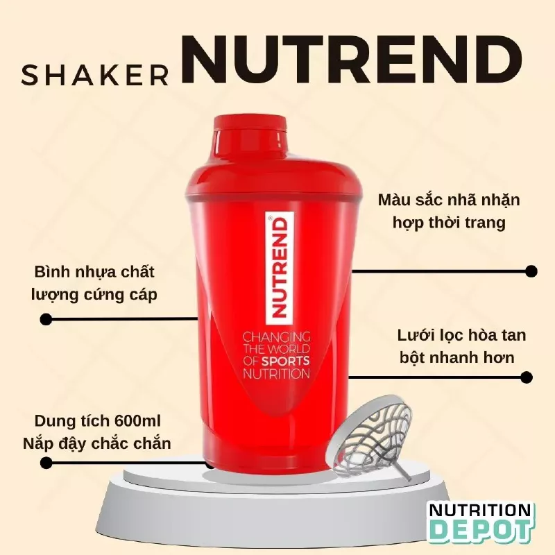 Bình lắc Nutrend Shaker là một phụ kiện không thể thiếu và dành riêng cho khách hàng là Gymer, sản phẩm đang được săn đón bởi vì hỗ trợ rất tốt cho người tập luyện thể hình. Sản phẩm được làm từ nhựa cao cấp, tuổi thọ độ bền cơ học cao hơn các bình nhựa thông thường tràn lan trên thị trường. Đồng thời sản phẩm trải qua những bước kiểm định khắt khe về cả chất lượng và độ an toàn trước khi đến tay người dùng, cho nên hoàn toàn đảm bảo sự an toàn sức khỏe.