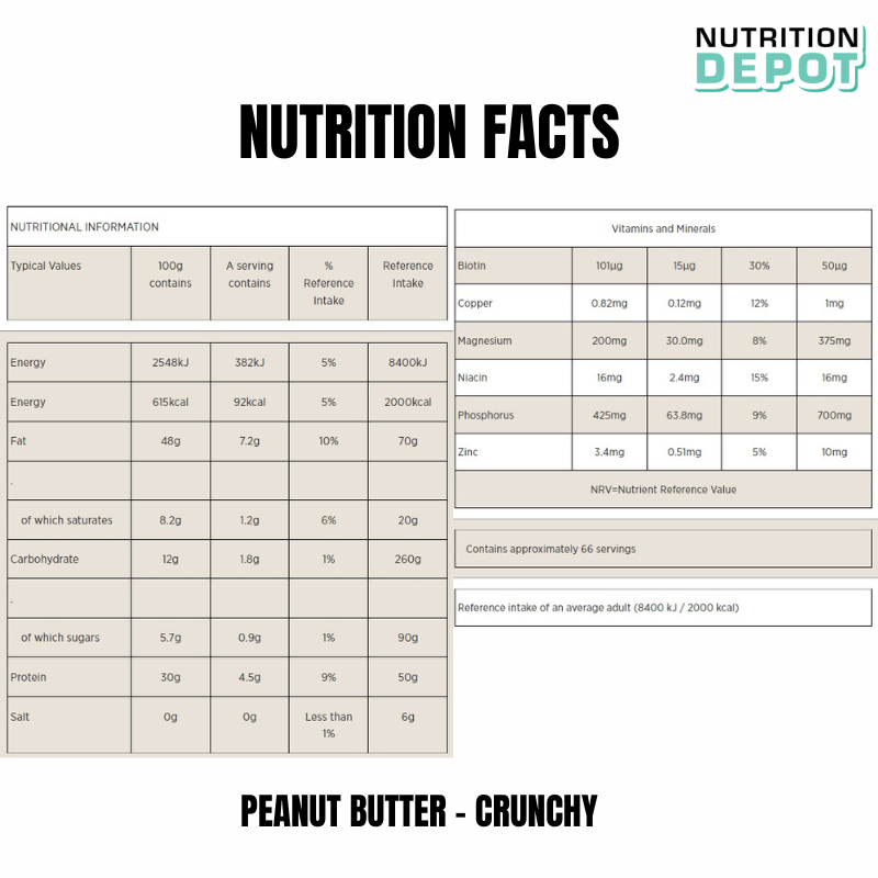 Với nguồn nguyên liệu từ đậu phộng rang, hoàn toàn tự nhiên, Bơ Đậu Phộng – Myprotein cung cấp hàm lượng protein tuyệt vời, là sự lựa chọn lý tưởng trong quá trình luyện tập và kiềm chế cảm giác thèm ăn của bạn.